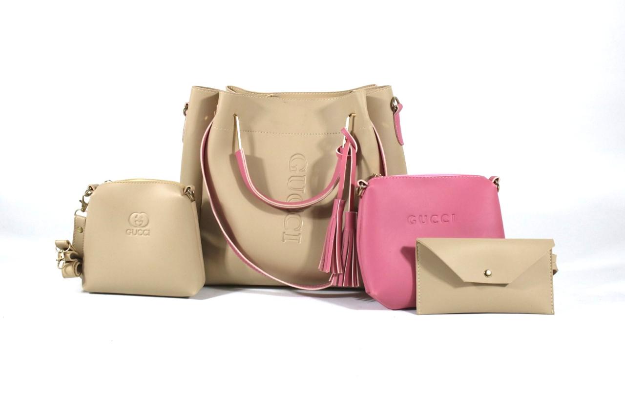 Cream & Pink Ladies Hand Bag (3pcs)
